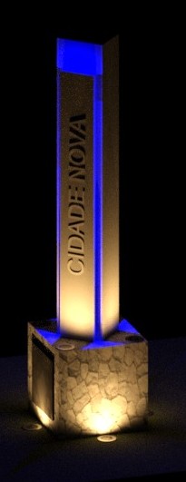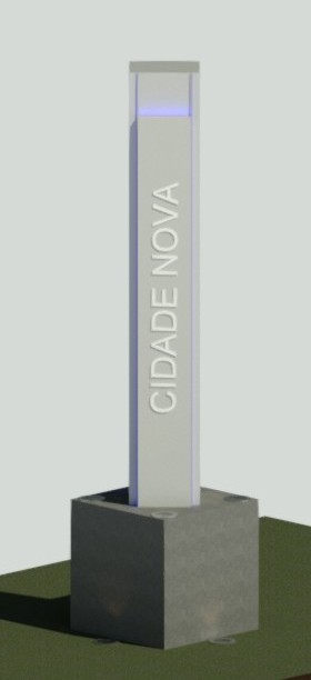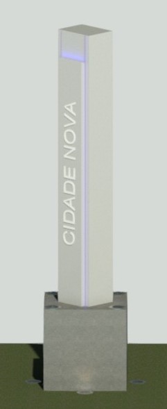 The Obelisk is a monument designed by architect Alessandre Campos for the visual identification of neighborhoods, cities, or communities. Made of reinforced concrete, it features a precise geometric design with a burnished cement finish. Its LED lighting system enhances its verticality and prominence, while expanded PVC letters display the locality’s name. The structure combines stability and visibility, serving as both a spatial reference and a symbol of community identity.